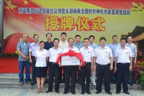 8月20日上午,怀化汽车南站站前广场前锣鼓喧天,彩球飘扬,处处洋溢着一片喜庆的景象,怀化汽车南站(即怀运集团长途货运分公司)党支部荣获的 “全国创先争优先进基层党组织”荣誉称号的授牌仪式在这里隆重举行。