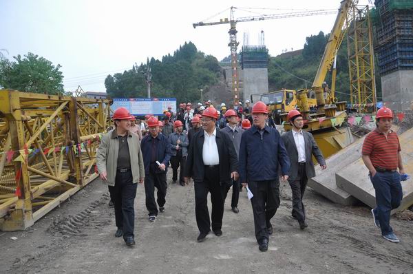 李盛霖参加湘江长沙综合枢纽蓄水通航仪式后,不辞辛劳来到湘西进行考察调研。11日上午,李盛霖一行考察了凤凰堤溪沱江大桥重建工程。在工程施工现场,当看到凤凰堤溪沱江大桥重建工程正有序进行,墩身施工全面开展时,李盛霖非常高兴,他表示凤凰堤溪沱江大桥的建成,将对提升湘西自治州基础设施的服务水平、发展当地旅游起到促进作用,其政治效益、经济效益和社会效益都非常重要,建设单位一定要科学管理,精心施工,确保工程质量和安全。