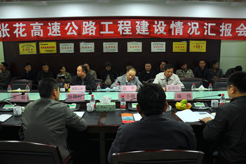 下午4时,赵平在张花公司四楼会议室听取了张花高速公路建设情况汇报,并与张花公司领导班子成员及全体中层干部召开座谈会,全面了解张花项目建设情况,探讨目前建设过程中遇到的困难和问题,并就下步工作提出要求。