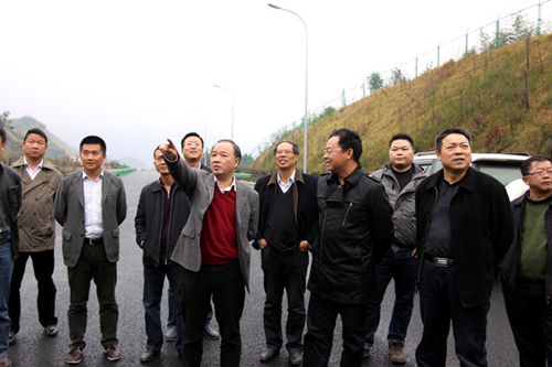 赵平一行查看了通平高速全线路面、房建、机电、交安、绿化工程建设情况,重点查看了隧道、收费站、服务区的建设现场。每到一处,赵平仔细察看施工质量,询问建设情况,对建设者进行亲切慰问并提出具体工作要求。在鹅公岩隧道右洞出口,赵平对端墙式隧道景观与周边环境自然相融表示满意,认为通平高速施工组织和现场管理科学有序,很多细节都体现了优化设计的合理性,在美观实用的前提下很好做到了投资控制。
