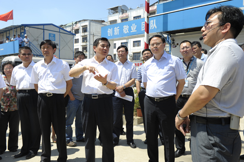 (湖南省委常委、常务副省长陈肇雄及湖南省人民政府副秘书长石华清、湖南省交通运输厅党组书记、厅长刘明欣和长沙市、株洲市主要领导参加调研。)