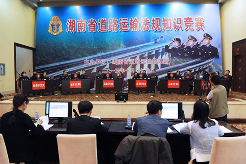 10月23日,全省道路运输法规知识竞赛在长沙举行。厅党组成员、副厅长胡建新,省交通运输工会主任陈永平莅临指导。竞赛特别邀请了4位行风政风监督员现场观摩指导。