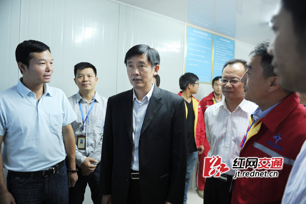 (10月22日—23日,湖南省交通运输厅党组书记、厅长刘明欣(前排右一)一行深入娄底境内在建高速公路,督察项目施工进度。刘明欣在调研安邵高速涟源段时要求,一定要在狠抓安全生产和工程质量的前提下,加快施工进度,确保实现年底建成通车。)