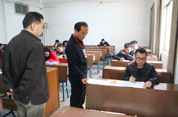 3月21日至22日,按照交通运输部职业资格中心统一部署,2015年度全国公路工程造价人员过渡考试(湖南考区)在长沙理工大学金盆岭校区顺利举行。本次考试报考人数共814人,其中甲级720人,乙级94人。厅党组成员、总工程师舒行钢在人事处、科教处等相关处室负责人陪同下亲临现场巡考,监督考试。