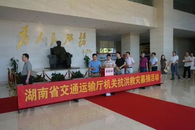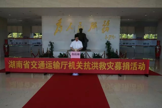 洪水无情人有情,为支援受灾地区灾后重建,帮助灾民渡过难关,7月19日上午,湖南省交通运输厅机关开展抗洪赈灾募捐活动。厅党组书记、厅长周海兵,其他在家厅领导及厅级离退休老同志带头捐款。