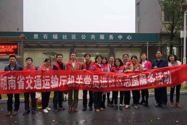 近日,湖南省交通运输厅组织机关党员和志愿者到黑石铺社区,开展“推动党的十九大精神进社区”和慰问社区困难党员活动。