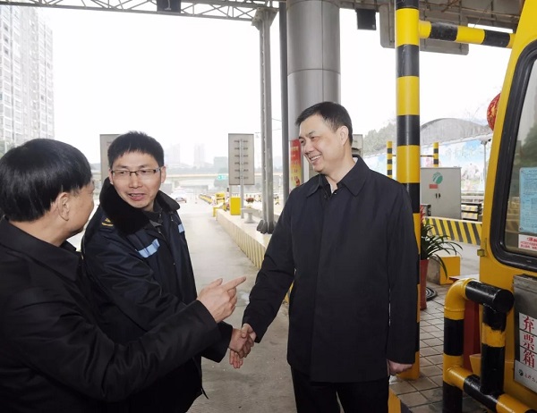 2月14日上午,周海兵又来到高速公路春运一线,慰问干部职工并督查高速公路春运疏堵保畅工作。省交通运输厅党组成员、副厅长肖文伟,省高速公路建设开发总司党委书记、总经理谢立新陪同。