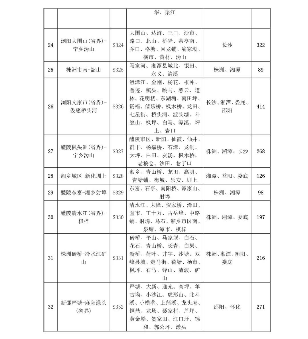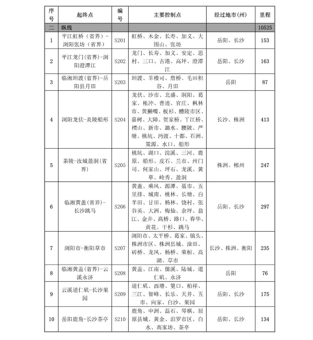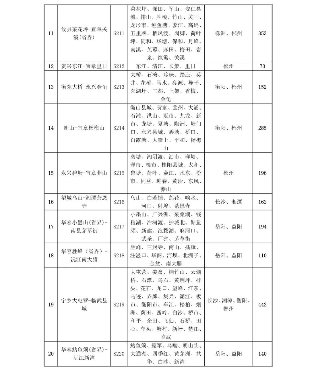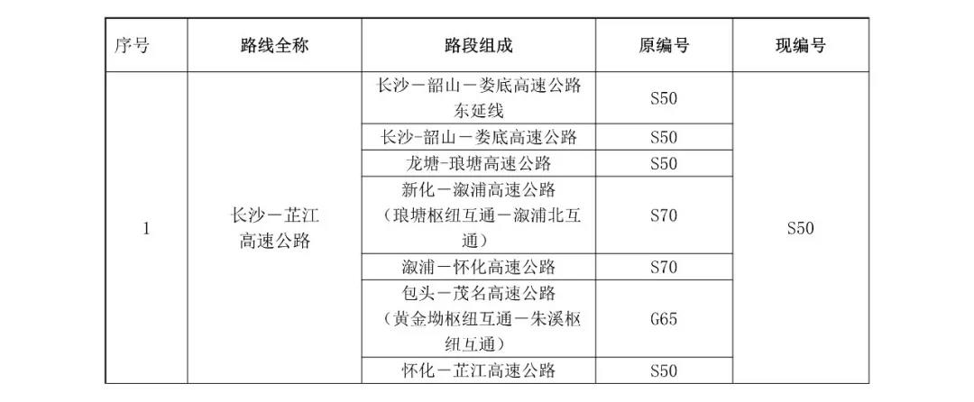 其中放射线以省会为起点,止点为终点;北南纵线以北段为起点,南段为终点;东西横线以东端为起点,西段为终点。例如:原省会放射线S103线,国省道路网调整前为开福区广盛-浏阳枨冲,路网调整后为S531线长沙永安东-江背南;原S208线国省道路网调整前为临湘江南-长沙黄花,路网调整后为S206线临湘黄盖(省界)-长沙跳马;原S319线路国省道路网调整前为浏阳黄花洞(湘赣界)-磊石,路网调整后仍为S319线,但线路名称调整为浏阳社港-安化县城。