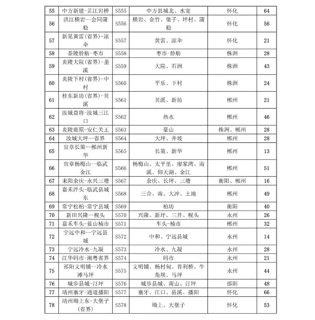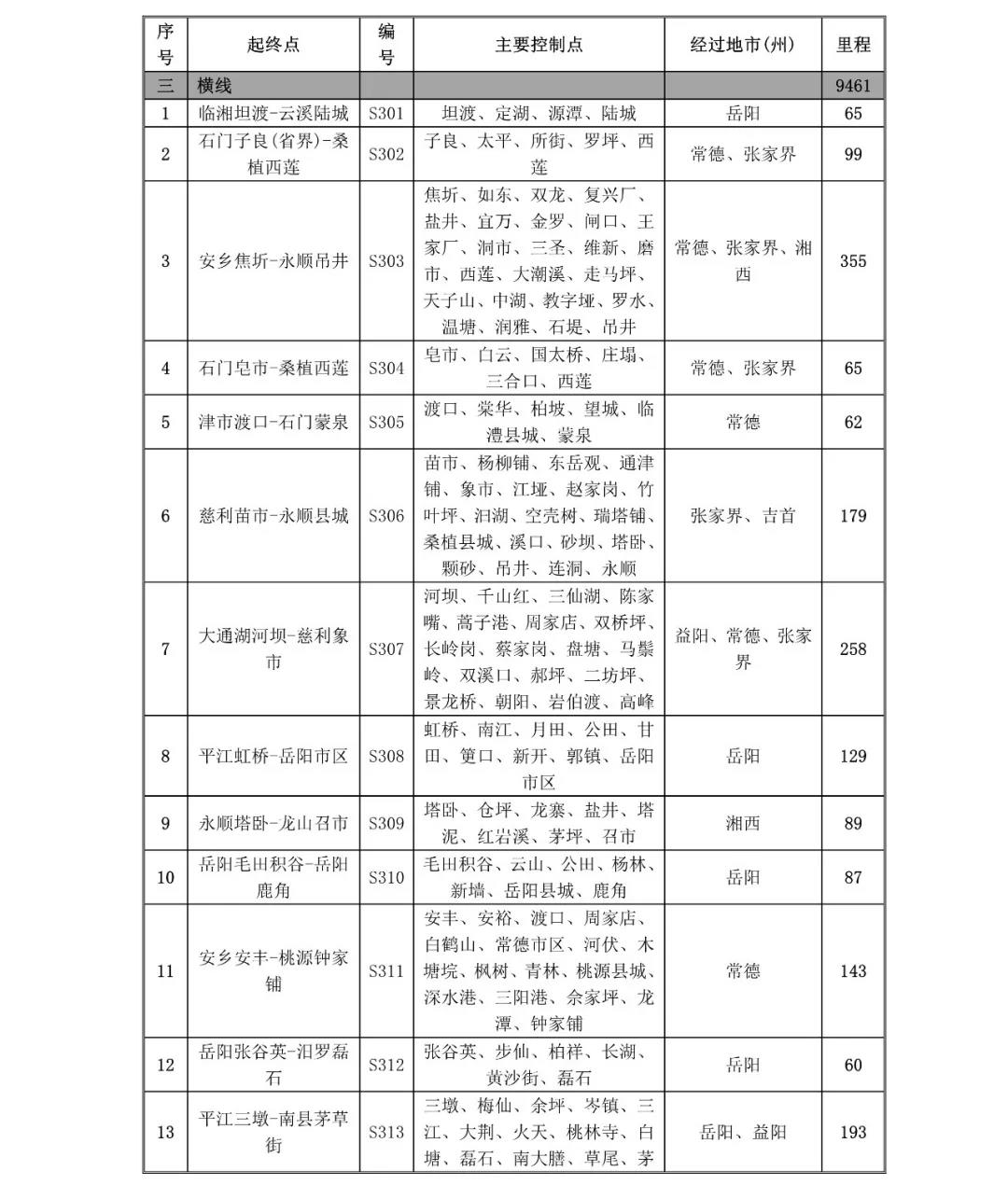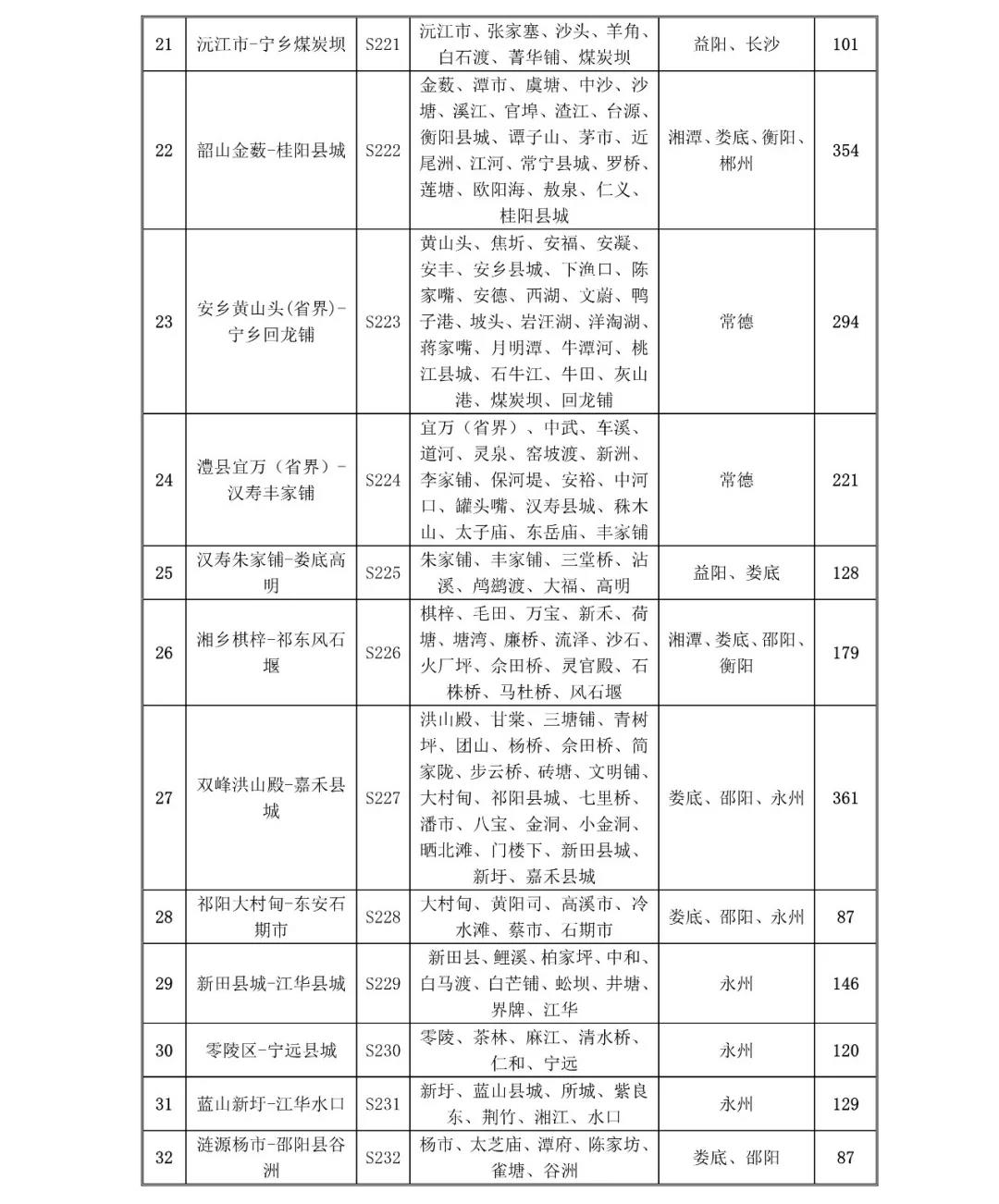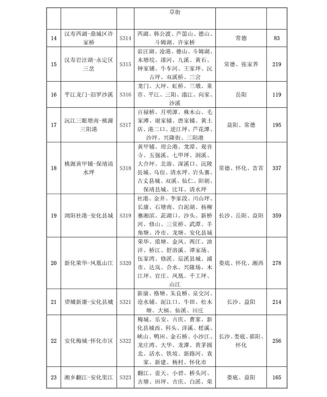 其中放射线以省会为起点,止点为终点;北南纵线以北段为起点,南段为终点;东西横线以东端为起点,西段为终点。例如:原省会放射线S103线,国省道路网调整前为开福区广盛-浏阳枨冲,路网调整后为S531线长沙永安东-江背南;原S208线国省道路网调整前为临湘江南-长沙黄花,路网调整后为S206线临湘黄盖(省界)-长沙跳马;原S319线路国省道路网调整前为浏阳黄花洞(湘赣界)-磊石,路网调整后仍为S319线,但线路名称调整为浏阳社港-安化县城。
