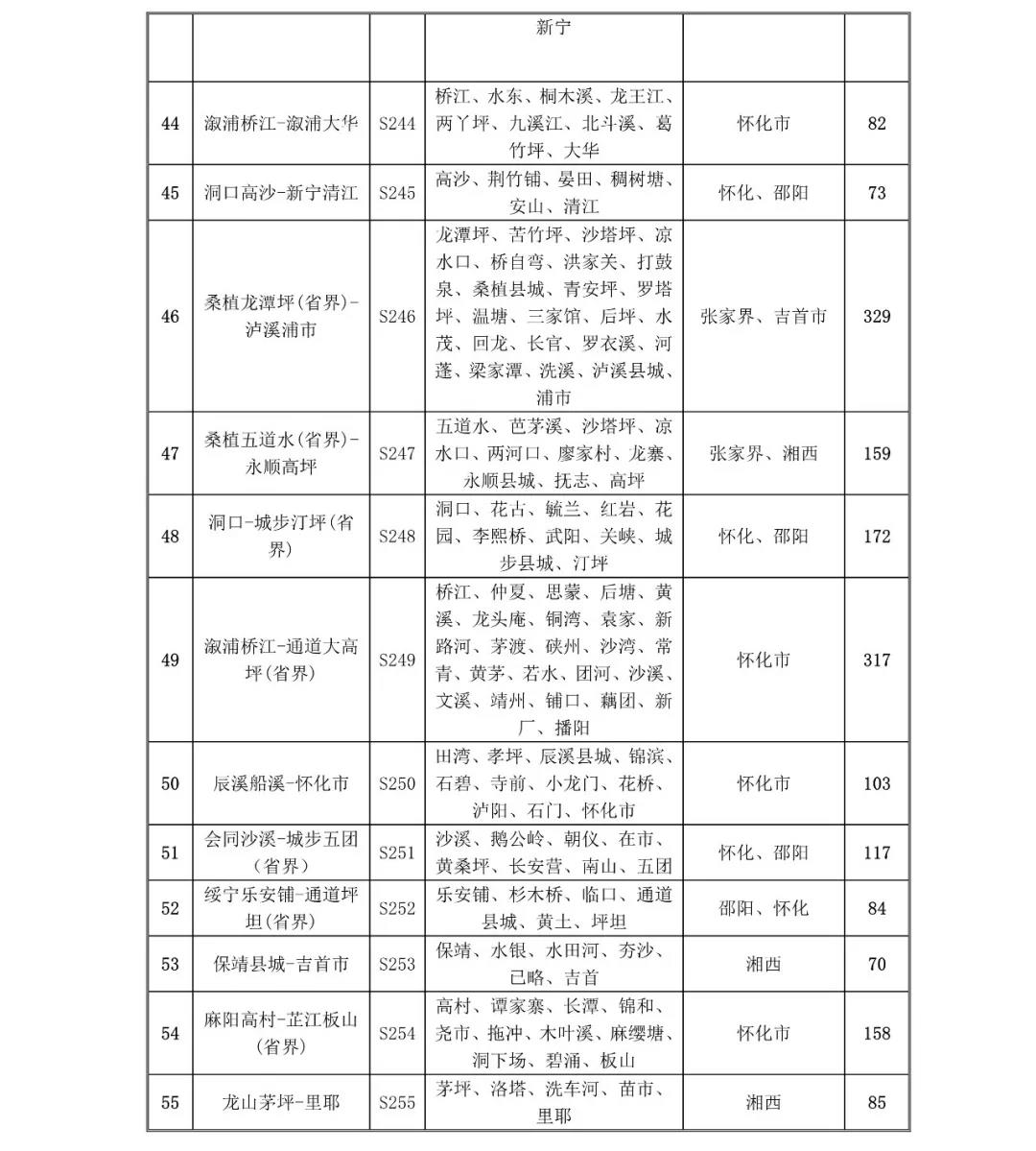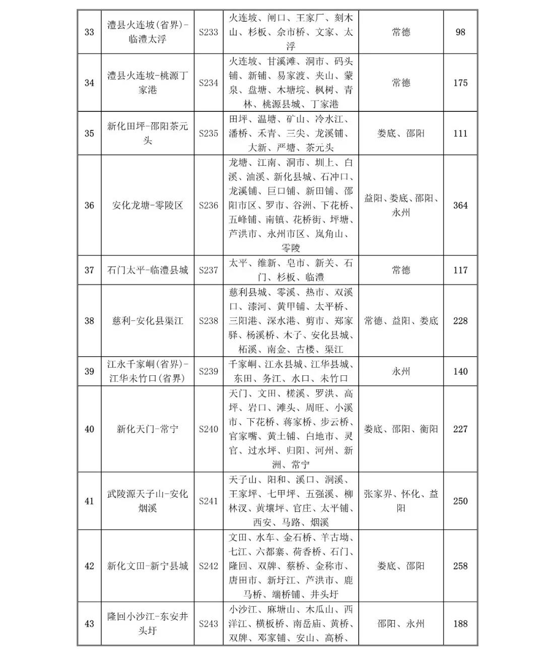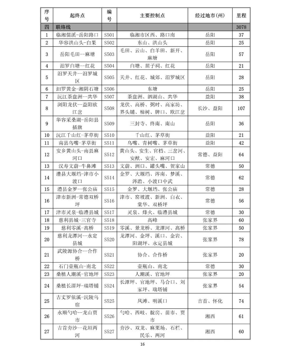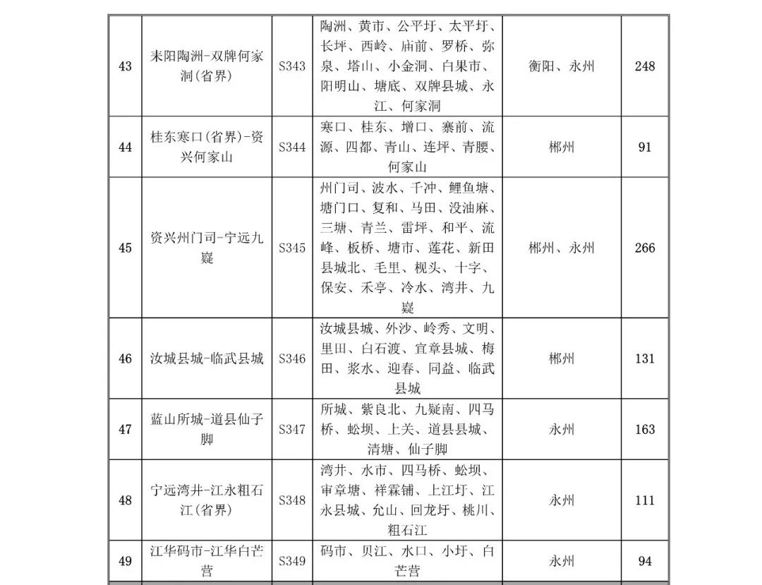 其中放射线以省会为起点,止点为终点;北南纵线以北段为起点,南段为终点;东西横线以东端为起点,西段为终点。例如:原省会放射线S103线,国省道路网调整前为开福区广盛-浏阳枨冲,路网调整后为S531线长沙永安东-江背南;原S208线国省道路网调整前为临湘江南-长沙黄花,路网调整后为S206线临湘黄盖(省界)-长沙跳马;原S319线路国省道路网调整前为浏阳黄花洞(湘赣界)-磊石,路网调整后仍为S319线,但线路名称调整为浏阳社港-安化县城。