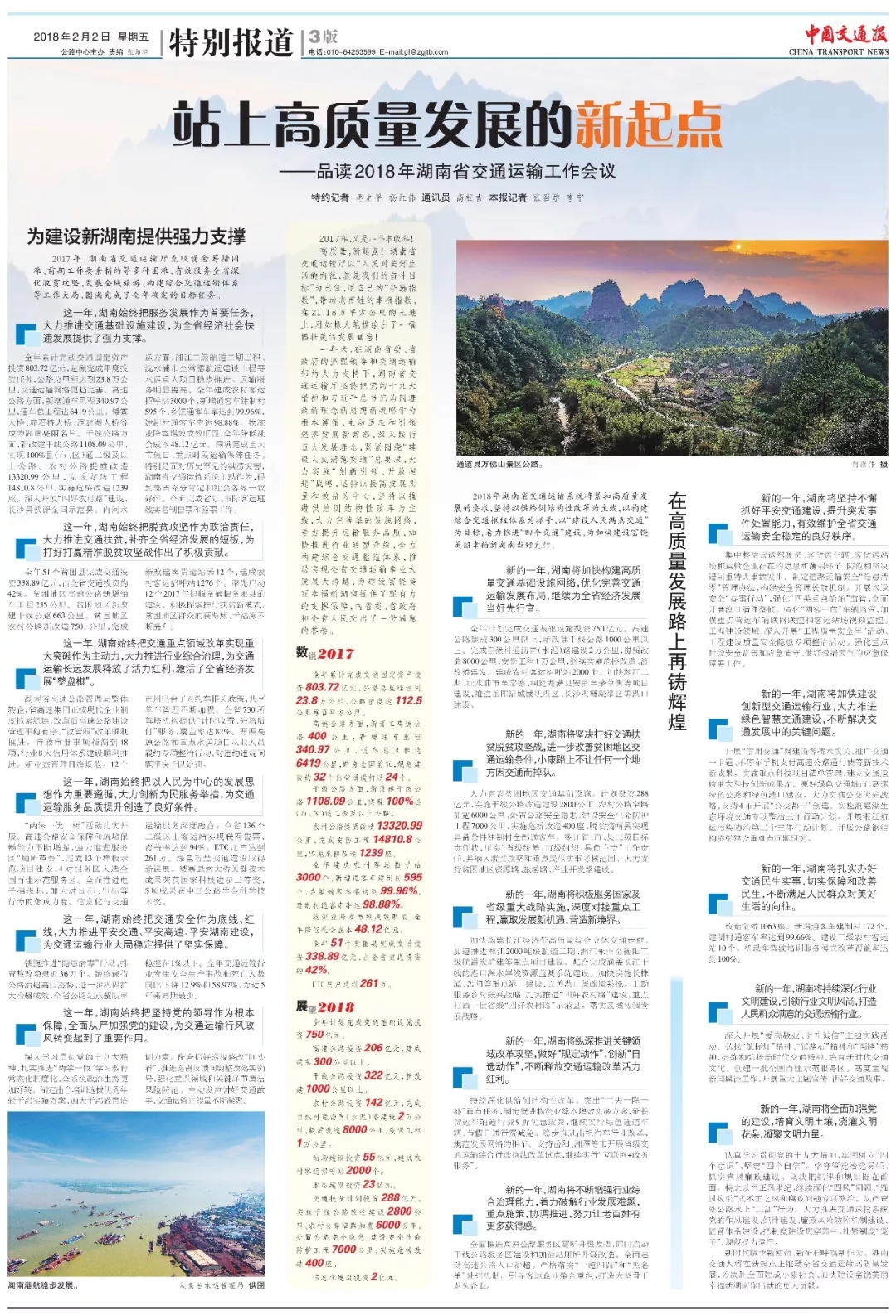 中国交通报:站在高质量发展的新起点—品读2018年湖南省交通运输工作会议
