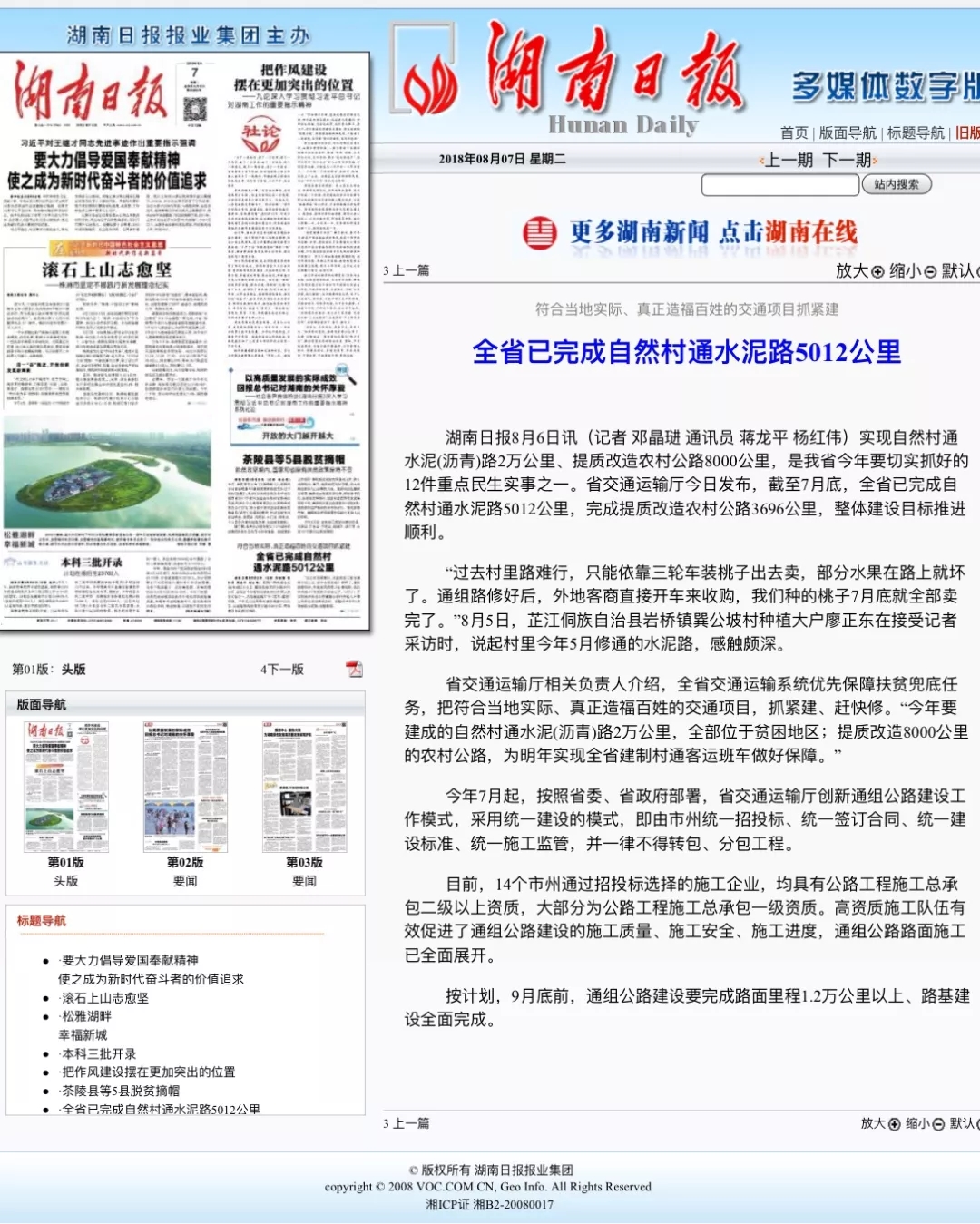 实现自然村通水泥(沥青)路2万公里、提质改造农村公路8000公里,是我省今年要切实抓好的12件重点民生实事之一。省交通运输厅今日发布,截至7月底,全省已完成自然村通水泥路5012公里,完成提质改造农村公路3696公里,整体建设目标推进顺利。