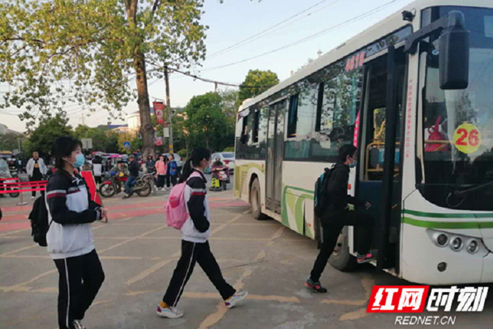 4月13日早上,乘坐定制公交路线的岳阳市岳阳楼区郭镇乡学生按要求来到乘车地点,有序乘车返校。