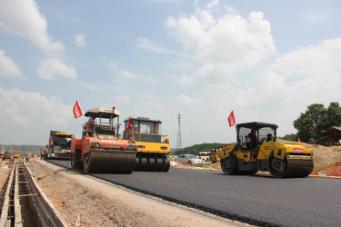 8月23日,在G240岳阳县城至湘阴公路岳阳县Y2标段和汨罗市M1标段施工现场,部分路段已开始沥青路面施工,沥青混凝土运输车、摊铺机、压路机一字排开,正在紧张作业,黑色路面初具雏形。目前,G240项目全线正全力加速推进,向9月20日全线通车目标进行冲刺。