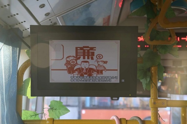 “两会”召开前夕,常德积极开展“廉政文化进车厢”活动,重点打造了一条廉政文化专线28路线,该线所有公交车车厢统一“换装”,每台车厢醒目位置张贴了6张图文并茂的廉政文化海报,车载电视循环播放党纪党规、典型案例、廉政动漫等内容。