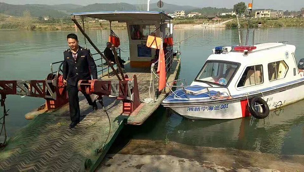 驾驶人叫李幼林,新宁县地方海事处安全股股长。他说:“天气晴好,再加上是大年初二,大家都选择在这一天出行,渡口、码头的安全压力就更大。”出发前,他在单位监控室详细了解了各涉水乡镇重点渡口人员出行、水文、风力等情况,通过信息平台发布了大风预警信息。