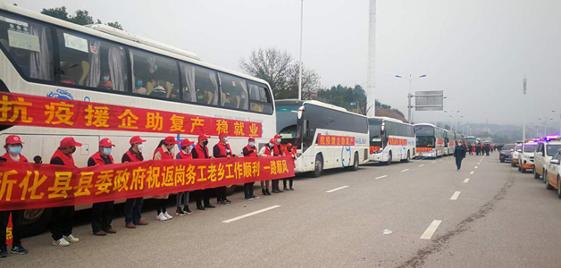 据悉,2月26日,该县组织前往广州、东莞、惠州的500名返岗人员在做好四类人员排查、信息登记、体温检测后,按照疫情期包车客座率为50%的要求,调度20台旅游客运车辆运输返岗人员复工复产。同时利用安全智能监管平台,加大了“点对点”运输包车全程安全监控和前端自动纠违,确保了每一台运输车辆运行安全。