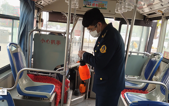 “36.8度,体温正常,请上车。”在高铁站广场公交首末站,乘坐4路公交车的乘客们佩戴着口罩排着队,安全乘务员手里拿着体温枪,认真地对每一位上车的乘客进行体温测量。县交通运输局执法人员和乘务人员手提喷壶,提着水桶、消毒剂,对停放的公交车辆进行内外消毒。在杨家桥渡口,每名过渡的乘客都必须佩戴口罩、体温检测正常后才能登船……