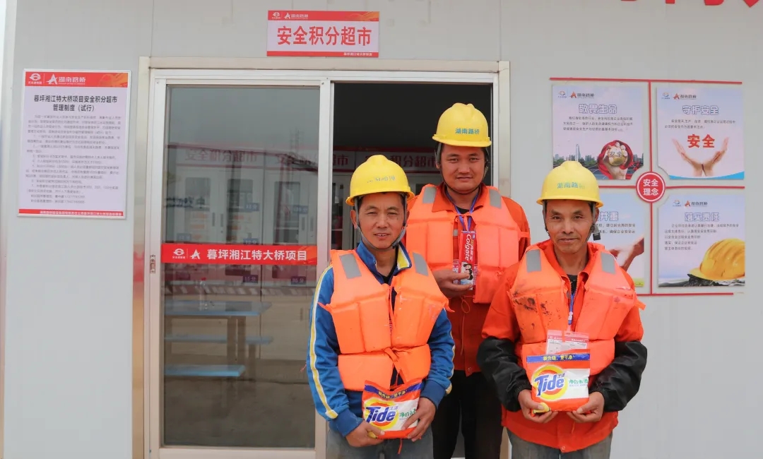 为进一步扩大“一会三卡”制度影响,暮坪湘江特大桥项目创新实施安全积分制度,为一线作业人员、管理人员发放安全积分卡,持卡人可通过落实“一会三卡”制度等安全行为获得相应积分,用积分可换取安全积分超市的商品。积分越多能换取的商品也越多,作业人员执行“一会三卡”制度积极性高涨。