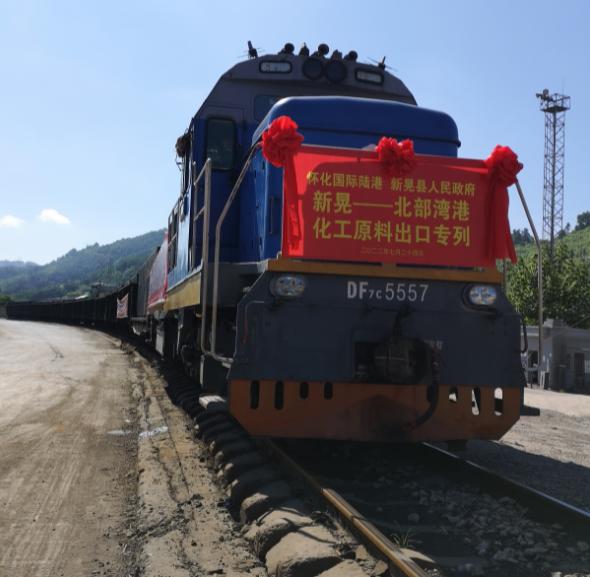 伴随着两声清脆的鸣笛声,7月24日上午,装载着约1400吨化工原料的“新晃—北部湾港”化工原料专列驶出新晃火车货运站。与此同时,“北部湾港—新晃”的金属原料进口专列顺利抵达新晃,此列班列有50标箱约3200吨铁矿资源。两车交汇,鸣笛示意,标志着怀化国际陆港新晃专列实现双向常态化,新晃对接西部陆海新通道、融入怀化国际陆港迈出了新步伐。