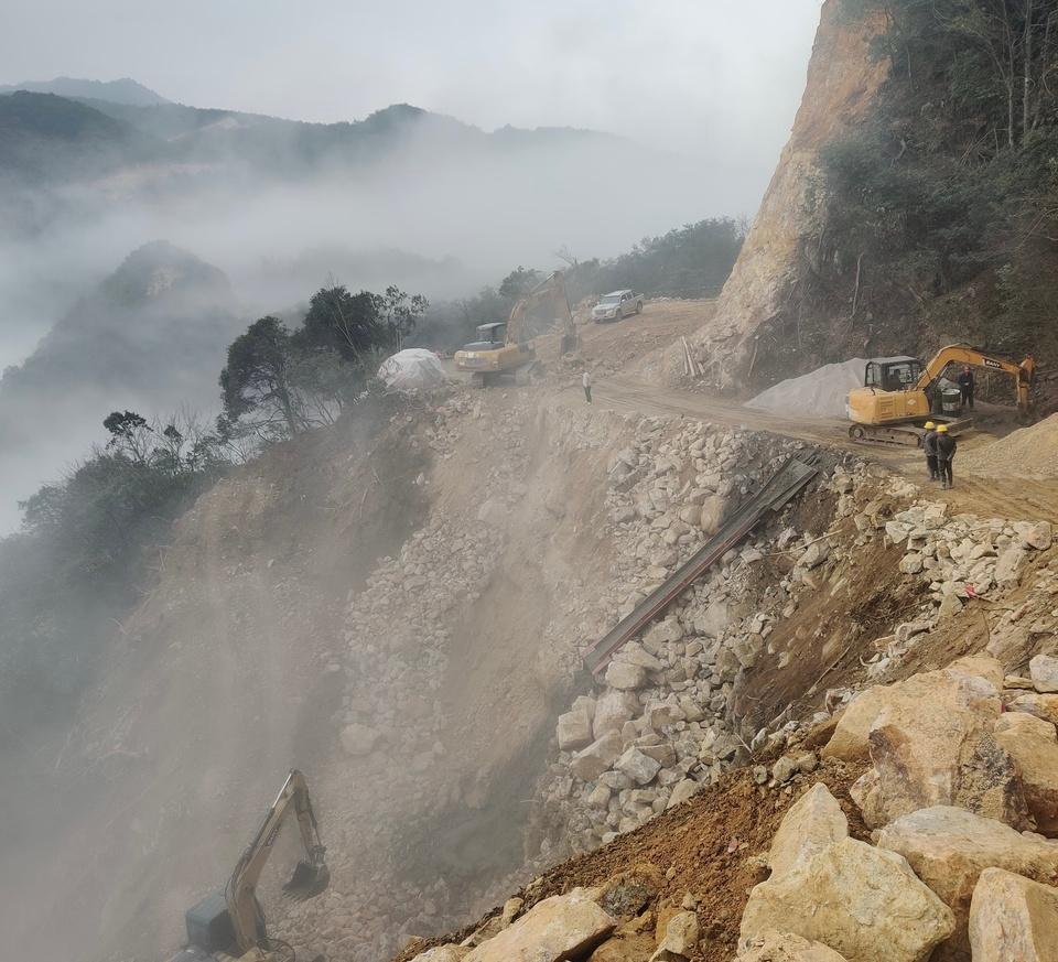 开年以来,该工程施工单位克服地理环境、天气等不利因素影响,加班加点抢抓进度,破雾前行。在施工现场,9台挖机及炮机,紧张有序作业,到处一片机器轰鸣。
