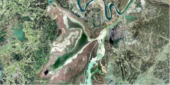 今年3月的洞庭湖卫星地图。(图源:央广网)