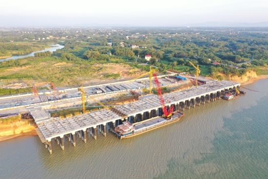 在岳阳港虞公港区一期工程项目施工现场,工人们正有序搭设模板、绑扎钢筋......据项目部负责人介绍,节日期间虞公港区上游泊位进入面层浇筑施工阶段;下游泊位预制构件安装完成60%;上横梁施工完成50%。项目抢工期、赶进度,抓质量、保安全,将“黄金周”变成“攻坚周”,正朝着今年年底交工的目标快速推进。