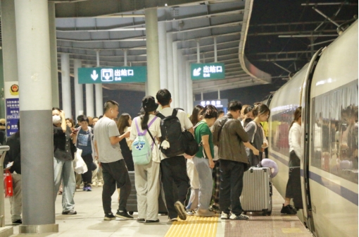 怀化高铁南站获悉,2023年中秋国庆黄金周铁路旅客运输期间(9月27日-10月6日),该站共计发送旅客275857人次,较去年同期增长57.5%,其中10月6日单日发送旅客37609人次,破开站以来单日发送旅客量历史记录,同比增加2.16万人,增长134.51%;较2019年增加1.08万人,增长40.07%。