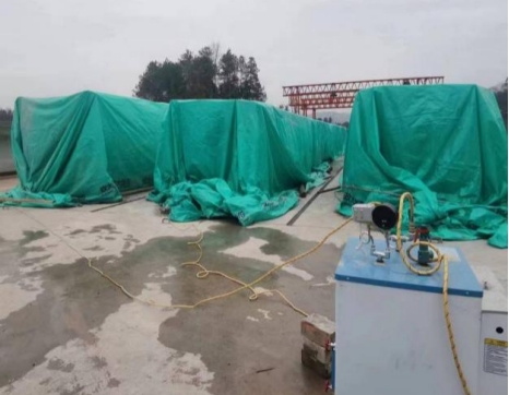 近日,怀化地区气温骤降,张官高速怀化分公司为确保低温下预制梁板混凝土质量,对全线梁板预制场采用蒸汽养生技术,让预制梁板“安然过冬”。