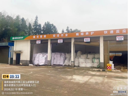 平洞高速马迹塘工区抗冰应急物资已准备充足,设备运行情况良好。