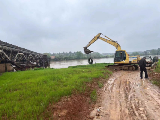 险情发生后,衡东县交通运输局迅速向上级报告险情,并牵头组织县水运事务中心、交通运输综合行政执法大队等部门赶赴现场开展救援。经现场勘查,两艘船舶横在两个桥墩中间,头尾与桥墩相撞,运砂船已被挤压变形,若不及时处置将威胁到永乐江下游新桥的安全。救援人员迅速调用大型船舶和机械,及时开展拖运除险作业,同时调集专业排险队伍,开展紧急排险。经过6个小时的共同努力,救援人员成功将两艘走锚船舶拖离桥墩,移至安全区域系固。次日,两艘船舶驶入攸县杨梓山水域,并停靠安全区域进行锚泊,及时消除汛期安全隐患。
