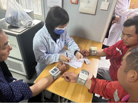 体检过程中,医护人员对工人的健康状况进行观察和记录,对工友们提出的疑问进行专业详细的解答,并针对特殊职业常见病、多发病的预防给予详细指导和建议。