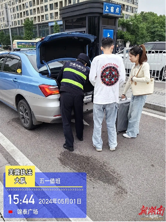 同样,岳阳高铁站车流人流剧增,岳阳市交通运输综合行政执法支队执法人员加大了巡查执法力度,严厉打击非法营运行为,确保高铁站周边道路运输市场稳定有序。