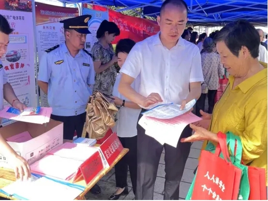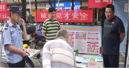 6月14日,芷江县道路运输服务中心在城区步行街路段,与全县各职能单位联合开展“安全生产月”集中宣传活动,向群众普及安全生产法律法规、交通安全、消防安全、用电安全等知识,讲解疲劳驾驶、超限超载等道路运输违法行为的危害性,活动共发放资料200余份,织密筑牢全社会安全防护网。