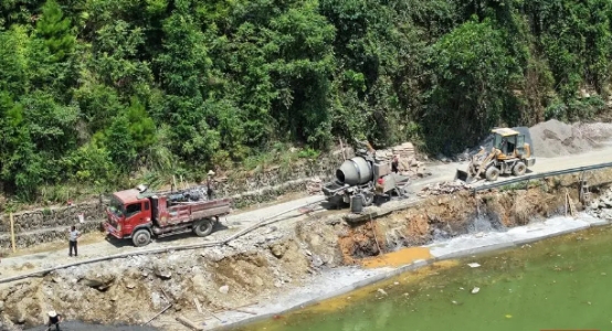 湖南湘绥发建筑劳务有限公司项目负责人苏文华介绍,目前正在进行X179线路基挡土墙水下混凝土基础施工,预计剩余工程将在四天内完成,保证道路通畅。