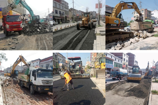 临近中秋假期,杨林街集镇路段施工现场一片繁忙,挖机、平地机、压路机等大型机械来回穿梭,施工人员铆足干劲、挥汗如雨,全力以赴推进工程建设。