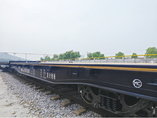 生产过程中,各部门通力协作,逐步攻克铺装复合木地板33辆/天、中梁内腔批量补涂防锈底漆、转向架闸瓦按部令要求临时批量更换、转向架轴向橡胶垫批量返工等多项难题,锚定目标加紧冲刺。最终在广州局集团有限公司株洲车辆监造项目部的大力支持下,产品从批量生产到项目交付,仅用了近50天时间。