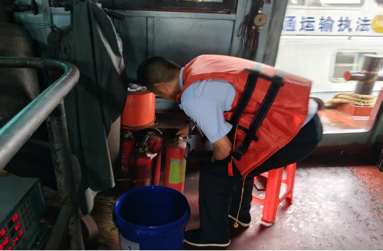 本次船舶安检重点检查了船舶标识、机电设备、防污染设备以及AIS使用和维护情况,救生衣、灭火器等救生消防设备配备情况和船舶安全管理状况,并在常规检查的基础上,由船检部门配合严查船舶“船图证”一致性、船舶稳性、舱室符合性,以及船舶通导设备配备等船舶安全技术状况。