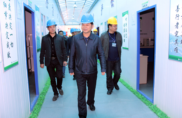 (2014年11月12日,省交通运输厅党组成员、纪检组长刘志信在益娄公司二标检查拌和站试验室调研。)