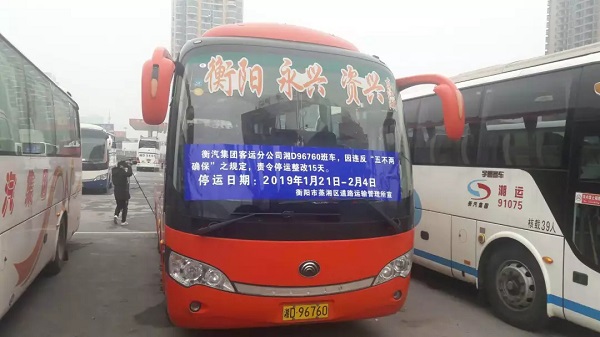 春运首日,衡阳市运管处对湘D96760客车违规经营行为,停运15天,暂收线路牌,道路运输证等证件,约谈公司负责人,严格处罚,邀请媒体曝光,起到震慑作用。
