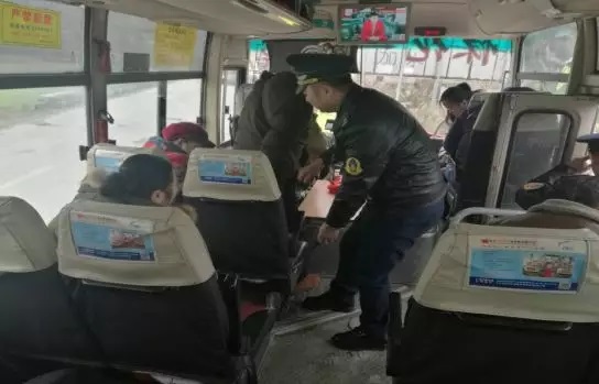 春运首日,湘潭市道路运输管理处检查组到即将发出的客运车辆上检查乘客系安全带情况、安全设施配备情况以及车内环境卫生情况等。