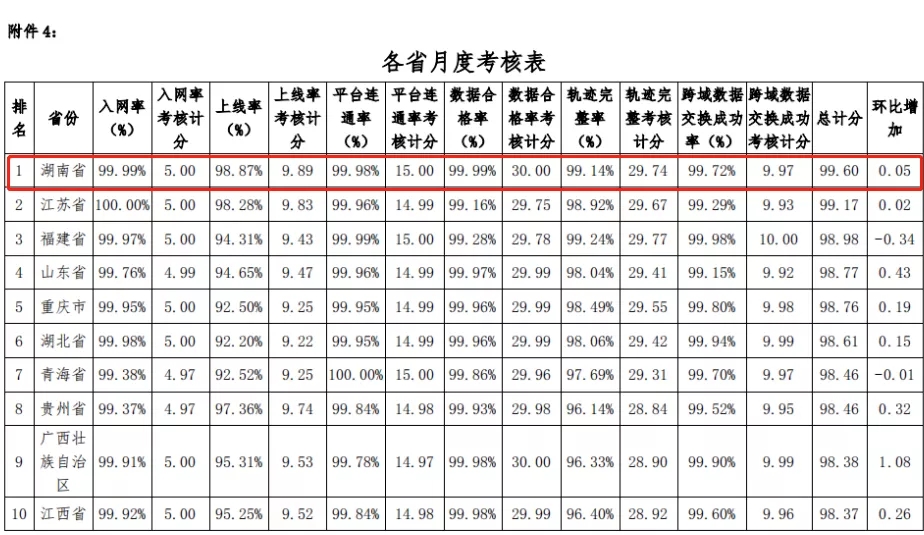 近日,记者从中国交通通信信息中心《关于全国重点营运车辆联网联控系统运行情况的报告》中获悉,2020年5月份,湖南省在全国重点营运车辆联网联控系统运行情况的考核中,位居全国第一。至此,湖南省重点营运车辆联网联控系统运行已经连续20个月位居全国前列,其中18个月领军第一。