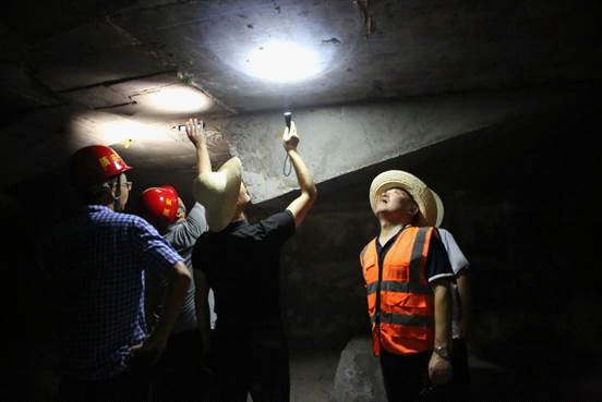 (检查组进入箱梁内部核查混凝土质量问题。)