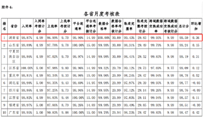 作为参考指标,2020年10月30日9:00实时在线率最高的三个省份为四川省、湖南省和福建省,分别为88.63%、88.20%和87.65%;14:00实时在线率最高的三个省份为云南省、湖南省和四川省,分别为91.06%、89.04%和 88.96%。(省道路运输管理局)