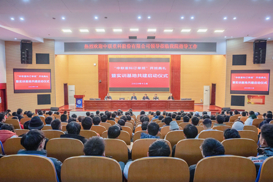 12月16日下午,机电工程学院“中联重科订单班”开班典礼暨实训基地共建启动仪式在学院学术报告厅成功举行。中联重科工程起重机公司总经理助理王立明、人力资源管理中心主任毛晓宇、工程起重机公司人力资源部长谢娟萍、工程起重机公司招聘主管康文建,学院院长姚利群、纪委书记戴兰平、副院长彭富强,实训处、机电工程学院相关领导及教职工、中联重科订单班全体学员300余人参加仪式。彭富强主持仪式。