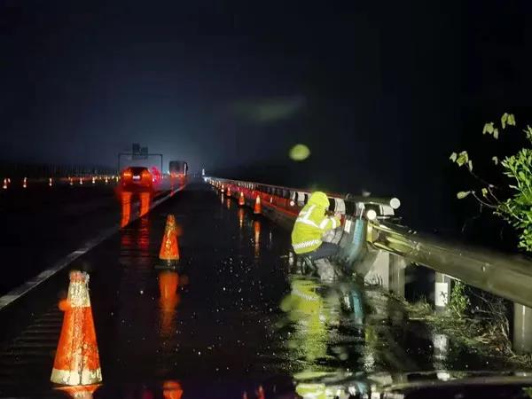 ▲湖南高速集团株洲分公司白关养护所安排小修单位及时补充桥面警示标志和锥筒,并提醒过往车辆安全出行,谨慎驾驶。