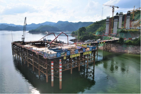 6月26日,历时48小时,由中交二航局承建的官新高速公路关键控制性工程马路口资水特大桥6#主墩承台第二层混凝土顺利浇筑完成,标志着马路口资水特大桥两个主墩基础施工全面完成。