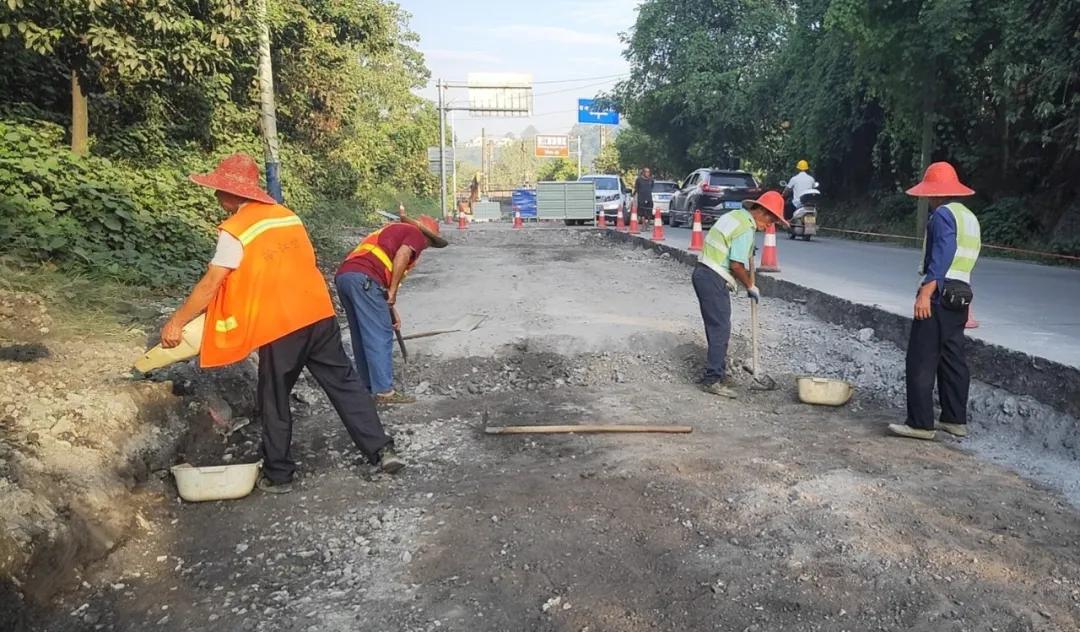 蓝山县公路建设养护中心:10月6日10时,永州蓝山S571线楠市路段,机械轰鸣、车来人往,一片热火朝天的繁忙景象,公路养护人员正在加紧进行路面抢修。
