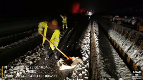 22日晚到23日凌晨,株洲市交通事务中心公路干部职工连续抗冰除雪,S329线城郊段23日早晨畅通无阻。