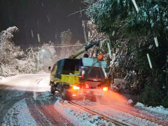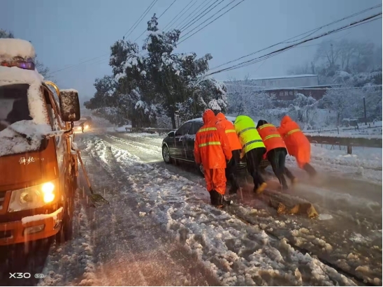 从22日白天到23日凌晨3时许,娄星区公路建设养护中心组织100余人次,出动机械35台次,使用融雪剂25吨,对管养线路G234线、G354线、S323线、S226线、S326线、X003线全线进行融冰除雪。所有抗冰抢险人员不畏严寒,通宵达旦,连续奋战十余个小时候,在就近养护工班短暂休息2小时,23日6时,抗冰抢险人员全员上路铲雪除冰,确保早高峰管养路段安全畅通。